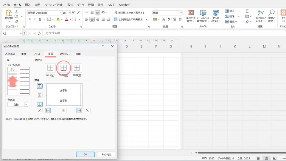 | 枠線が印刷されない | 画面表示用の罫線になっている | Step4①:セルの書式設定から「罫線」を設定する |