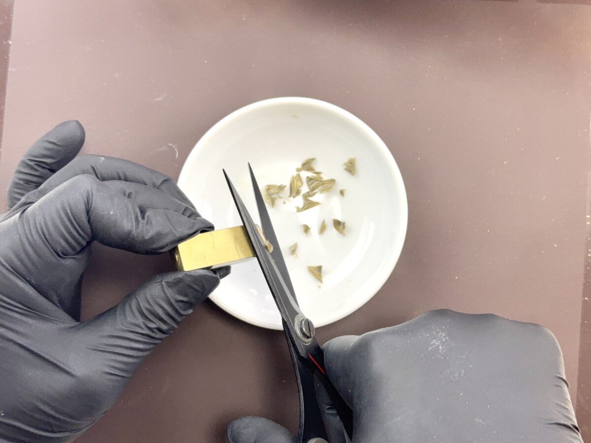 箔を自分でちぎる際は、ピンセットにベビーパウダーをまぶすと、くっつき防止になりますよ。